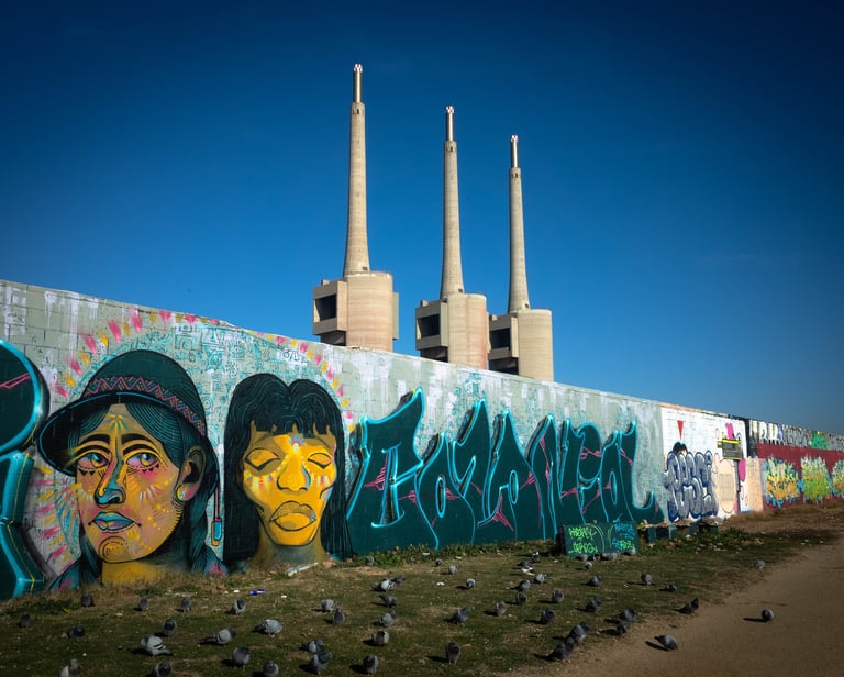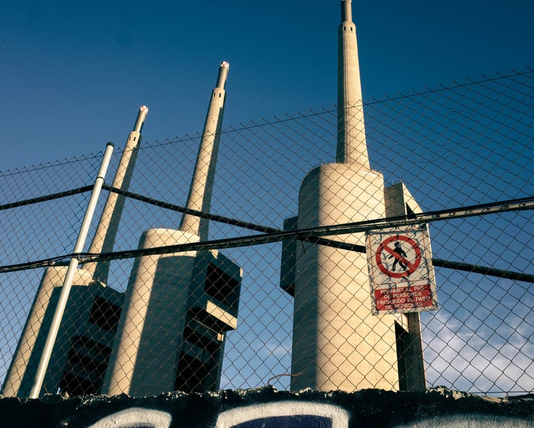 Commune juxtaposée à Barcelone, Sant Adria se dresse entre la Méditérannée et la rivière le Besos. Les 3 cheminées de l'ex-centrale thermique sont devenues l’icône de la ville. Manque dans cette série le Besos, c'est un comble ! Je ne manquerai pas d'y remédier lors de mon prochain passage dans le coin !