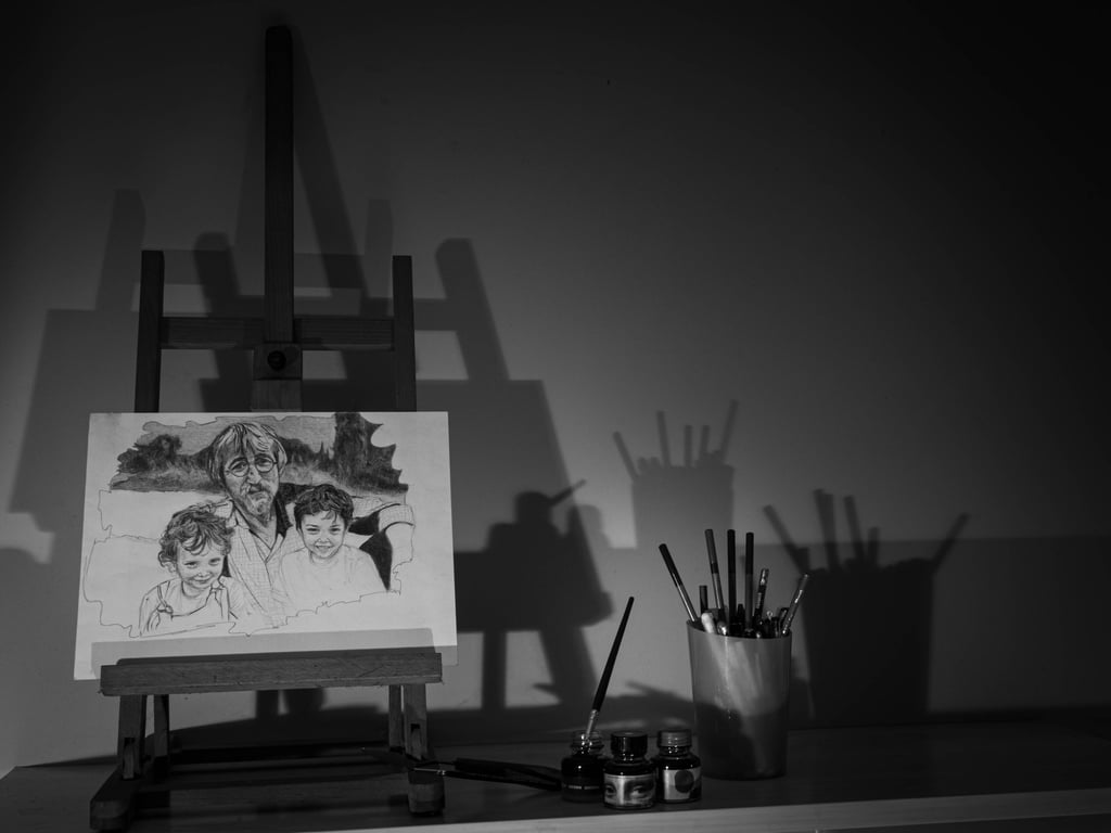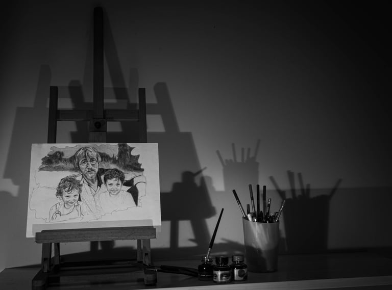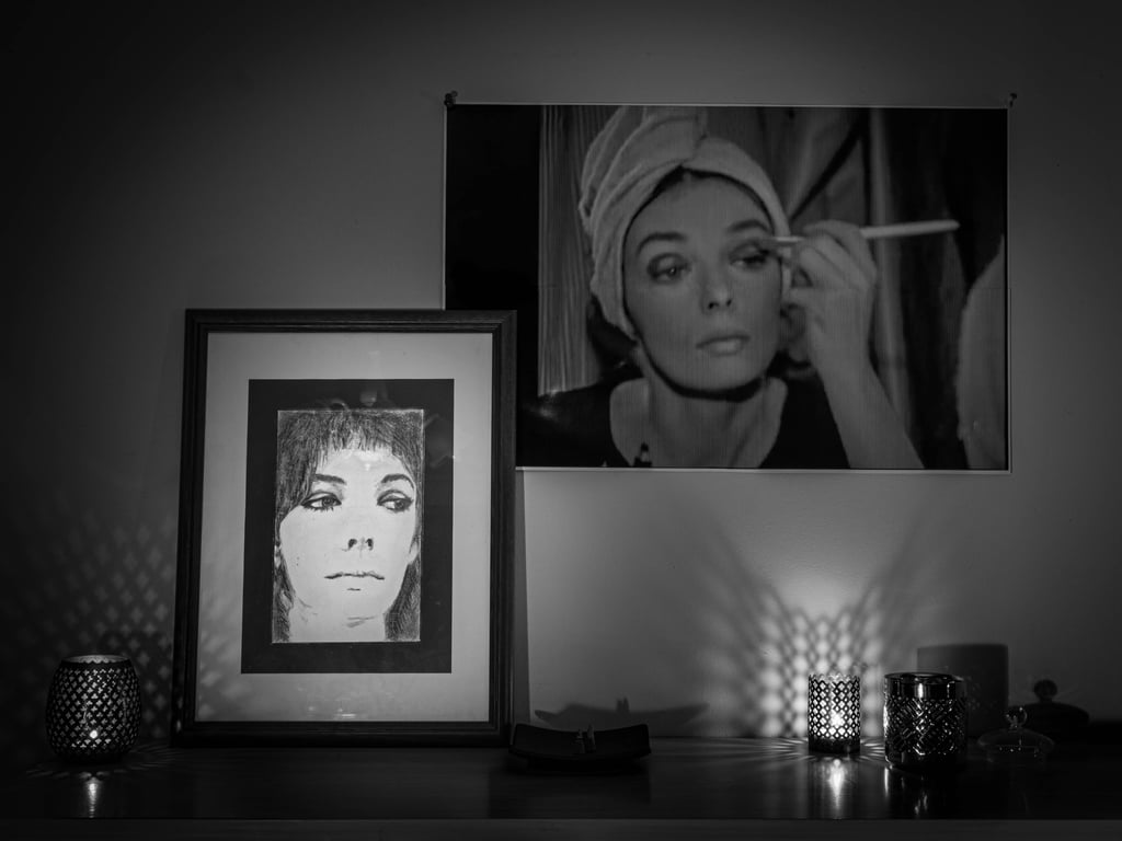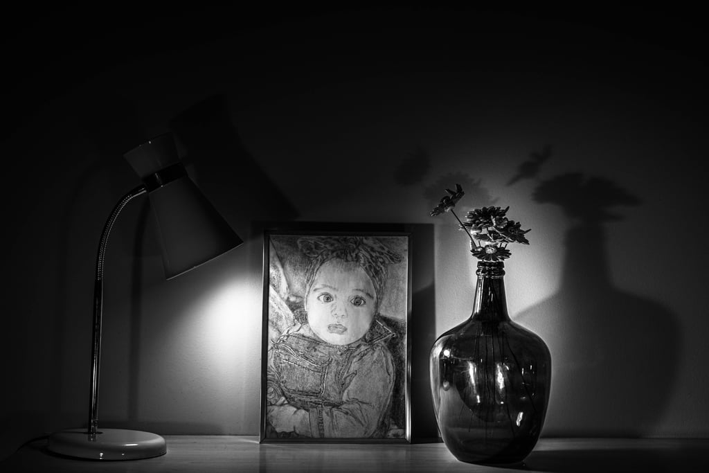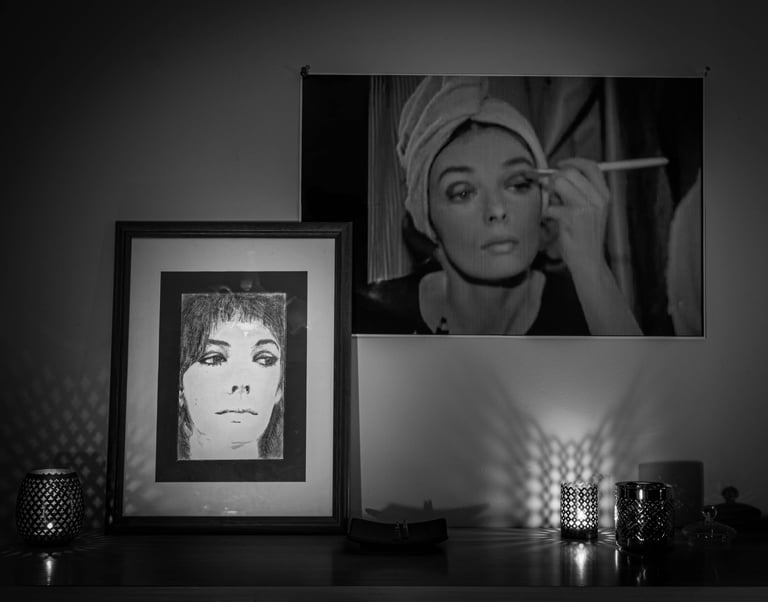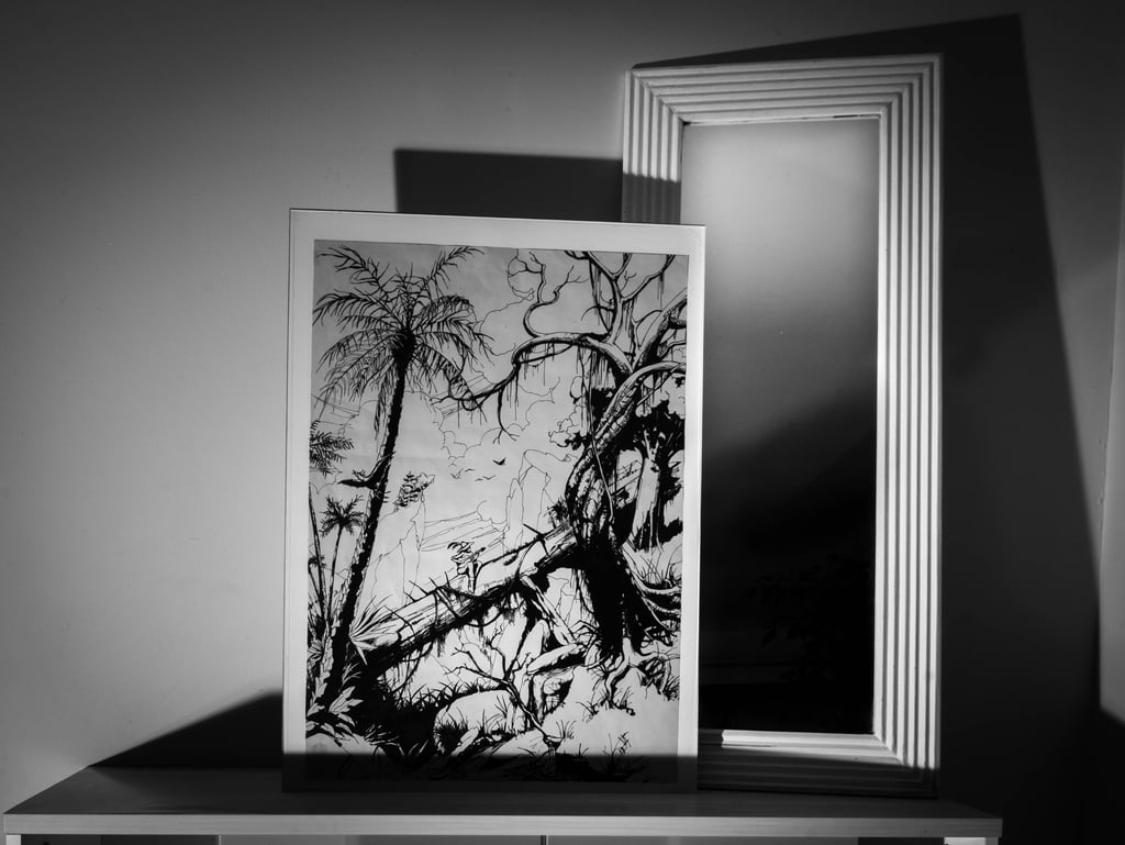 Mes 1er travaux photographiques entrepris lors du confinement COVID de 2020 : la mise en scène de mes dessins en noir & blanc dans une ambiance ombres et lumières.