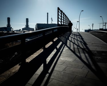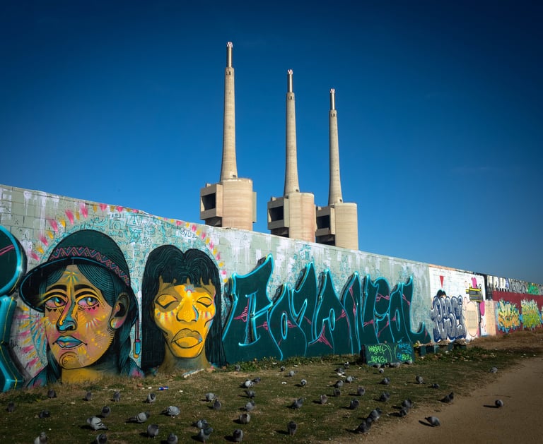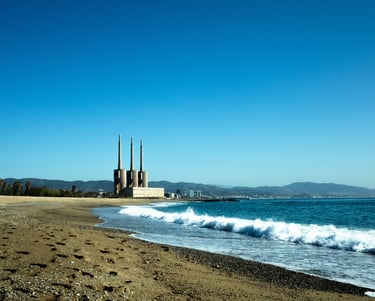 Commune juxtaposée à Barcelone, Sant Adria se dresse entre la Méditérannée et la rivière le Besos. Les 3 cheminées de l'ex-centrale thermique sont devenues l’icône de la ville. Manque dans cette série le Besos, c'est un comble ! Je ne manquerai pas d'y remédier lors de mon prochain passage dans le coin !
